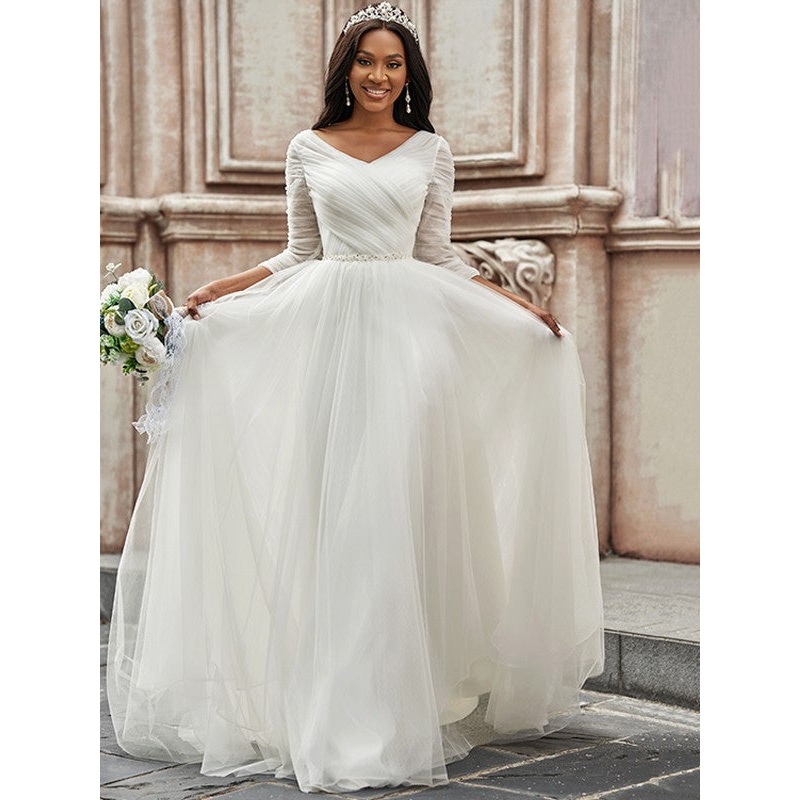 Be the first to review “A-Line/Princess Ruched Sweetheart Tulle 3/4 Sleeves Sweep/Brush Train Wedding Dresses”