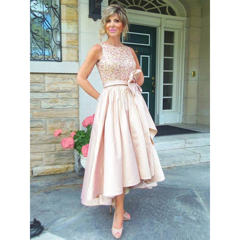 A-Line/Princess Satin Bowknot Scoop Sleeveless Asymmetrical Mother of the Bride Dresses