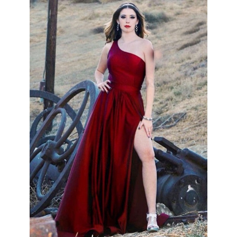A-Line/Princess Satin One-Shoulder Ruffles Sleeveless Sweep/Brush Train Dresses