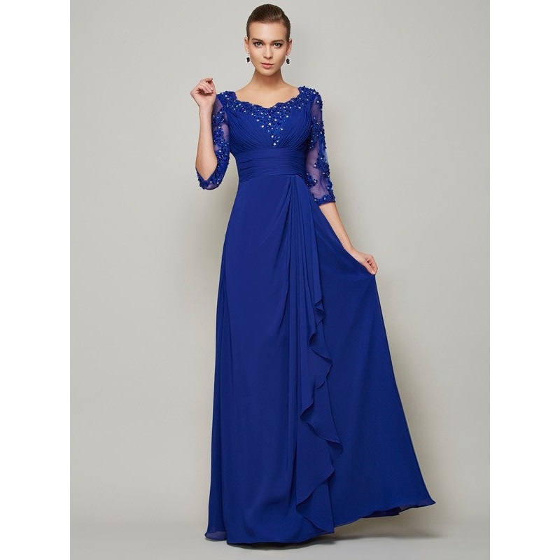 A-Line/Princess Scoop 3/4 Sleeves Lace Long Chiffon Mother of the Bride Dresses