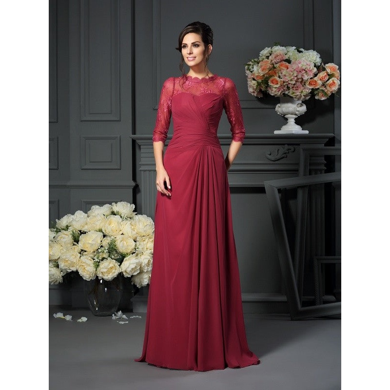 A-Line/Princess Scoop Applique 1/2 Sleeves Long Chiffon Mother of the Bride Dresses