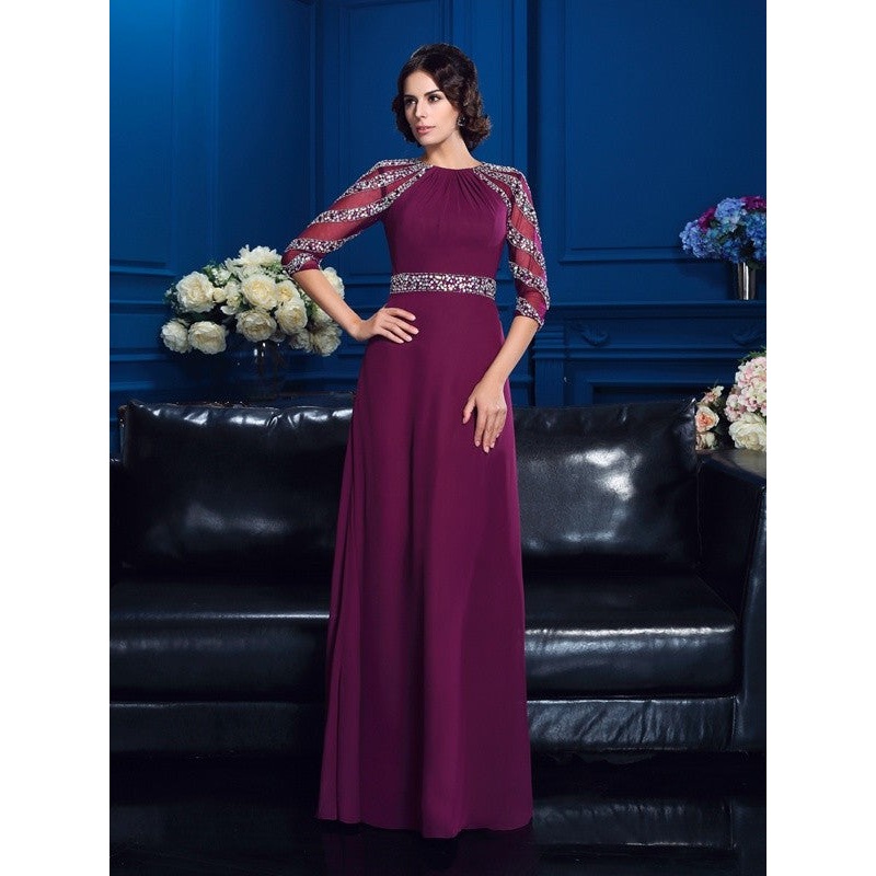 A-Line/Princess Scoop Beading 3/4 Sleeves Long Chiffon Mother of the Bride Dresses
