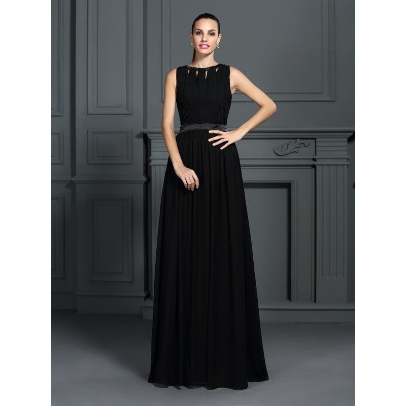 A-Line/Princess Scoop Pleats Sleeveless Long Chiffon Dresses