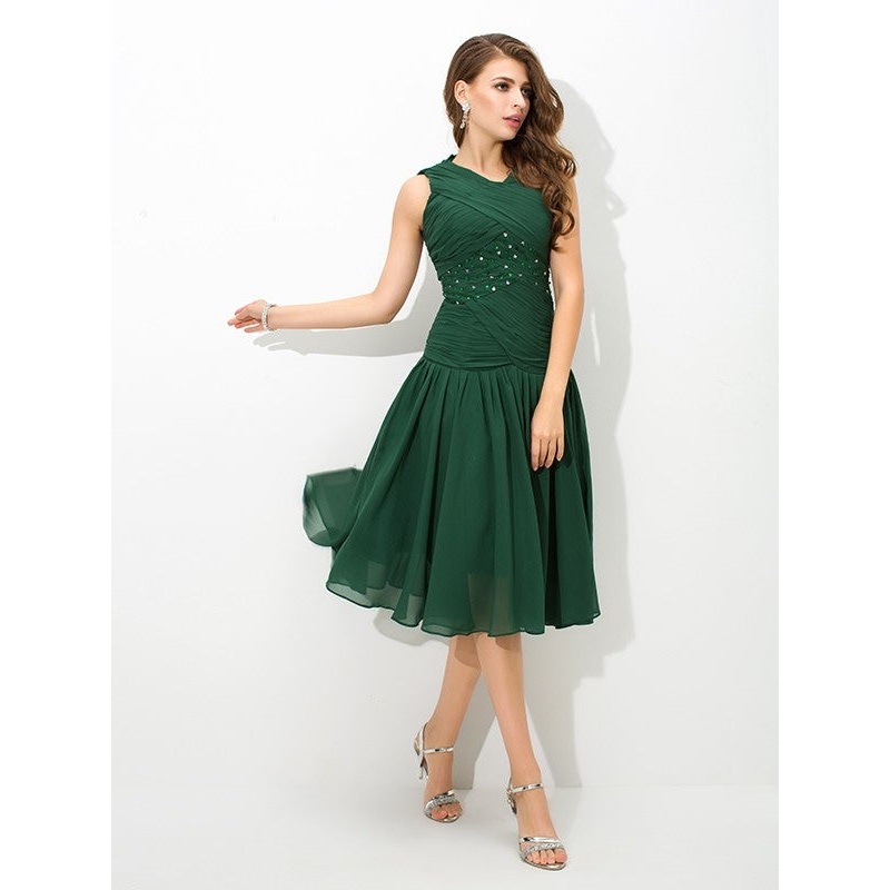 A-Line/Princess Scoop Pleats Sleeveless Short Chiffon Dresses