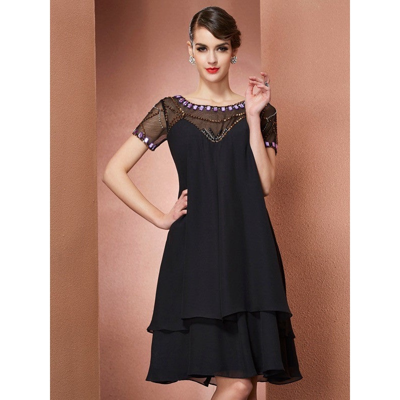 A-Line/Princess Scoop Short Sleeves Beading Short Chiffon Mother of the Bride Dresses