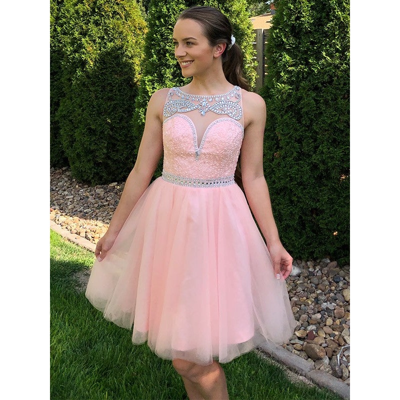 Be the first to review “A-Line/Princess Scoop Tulle Sleeveless Beading Short/Mini Homecoming Dresses”