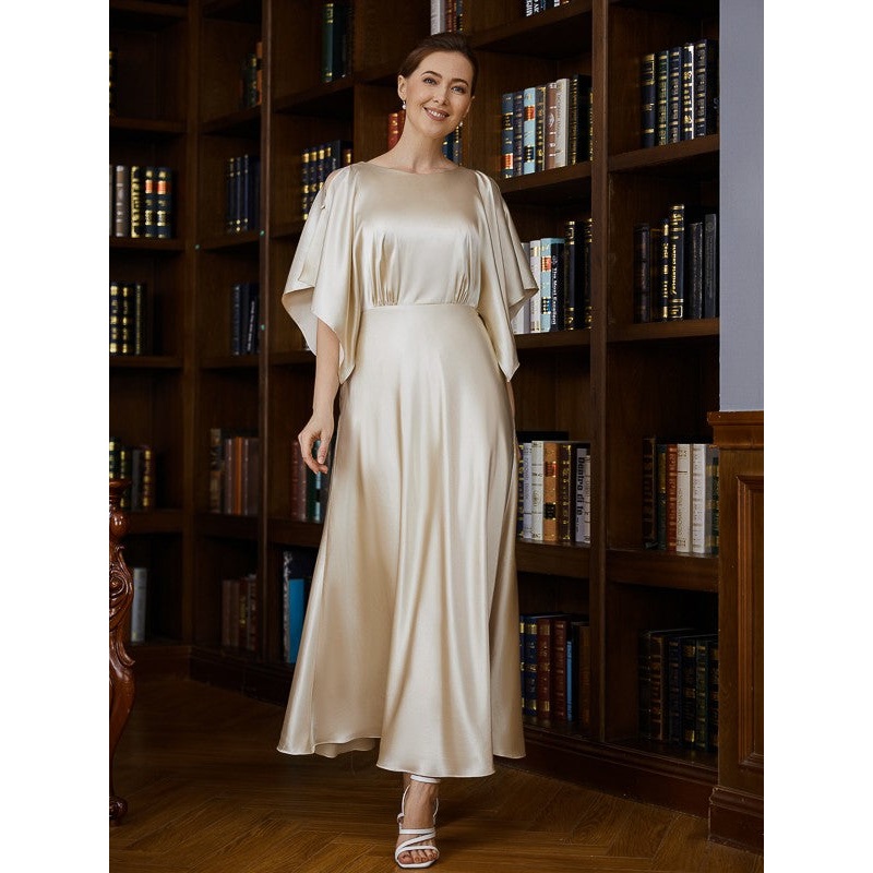 A-Line/Princess Silk like Satin Ruched Scoop 1/2 Sleeves Ankle-Length Mother of the Bride Dresses