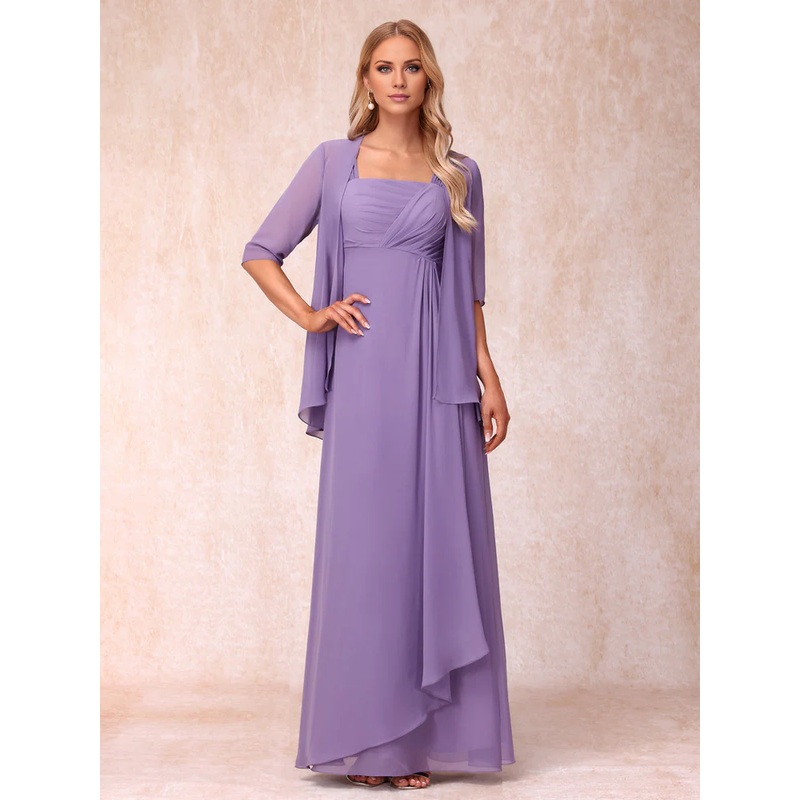 A-line princess sleeveless lotus leaf side length design, mother of the bride dress