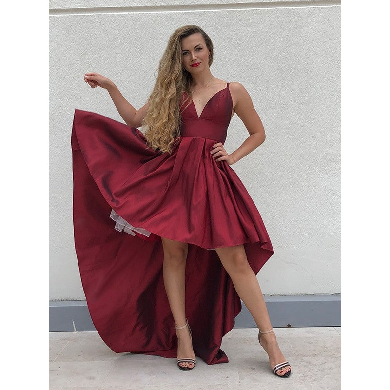 A-Line/Princess Spaghetti Straps Taffeta Ruffles Sleeveless Asymmetrical Homecoming Dresses