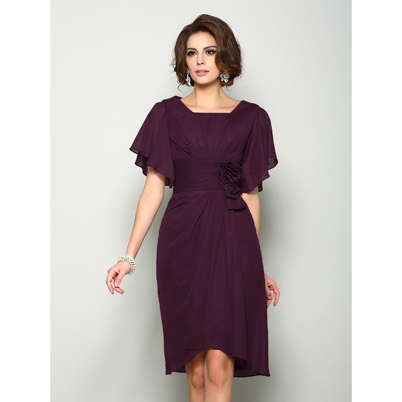 A-Line/Princess Square Hand-Made Flower Short Sleeves Short Chiffon Mother of the Bride Dresses