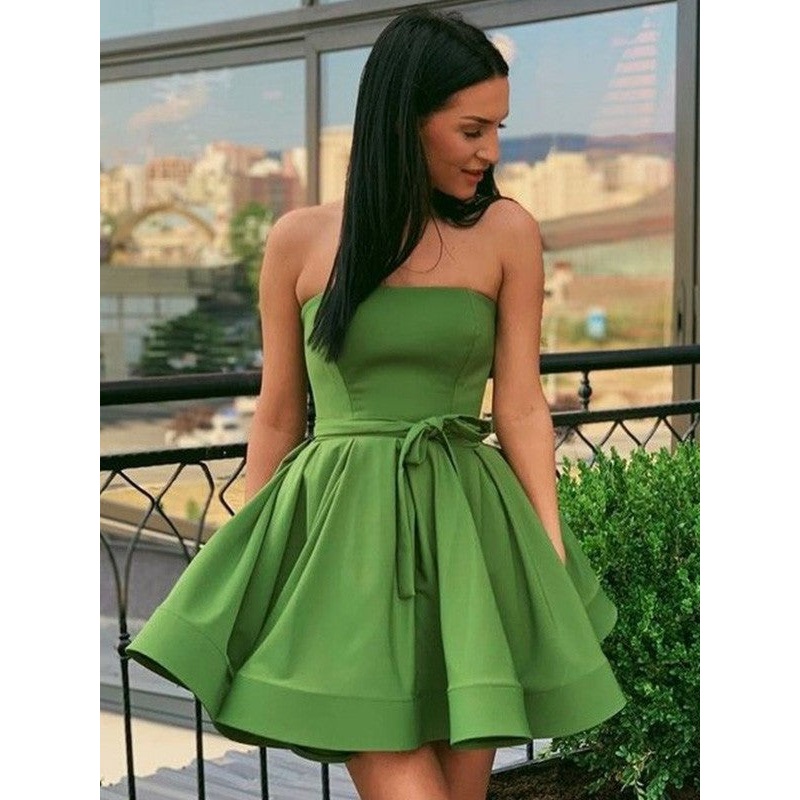 A-Line/Princess Strapless Ruffles Sleeveless Satin Short/Mini Homecoming Dresses