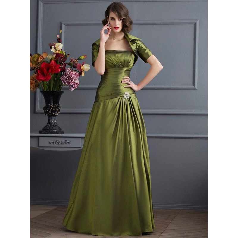 A-Line/Princess Strapless Sleeveless Beading Long Taffeta Mother of the Bride Dresses