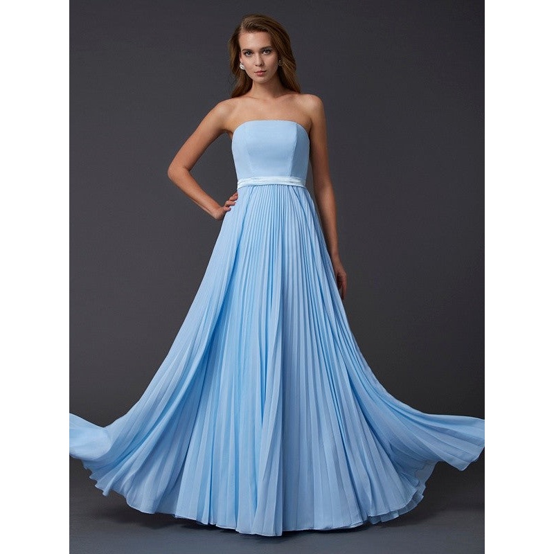 A-Line/Princess Strapless Sleeveless Ruched Long Chiffon Dresses