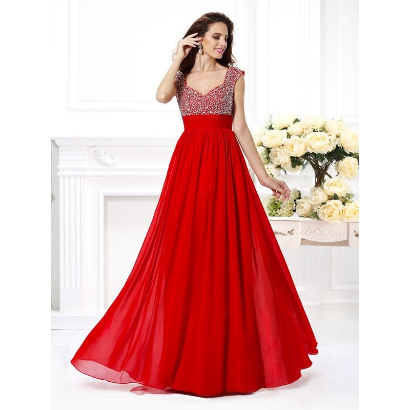 A-Line/Princess Straps Beading Sleeveless Paillette Long Chiffon Dresses