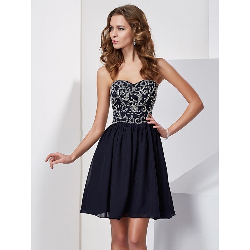 A-Line/Princess Sweetheart Beading Sleeveless Chiffon Short Homecoming Dresses