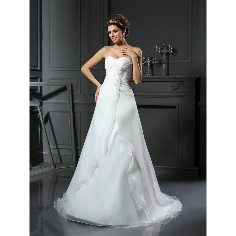 A-Line/Princess Sweetheart Ruched Sleeveless Long Satin Wedding Dresses