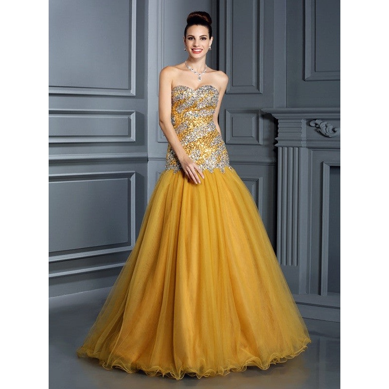 A-Line/Princess Sweetheart Ruffles Sleeveless Long Satin Dresses