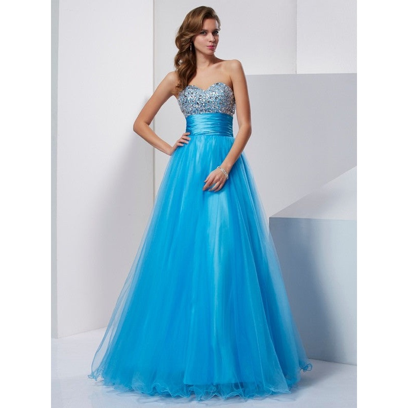 A-Line/Princess Sweetheart Sleeveless Beading Long Tulle Dresses