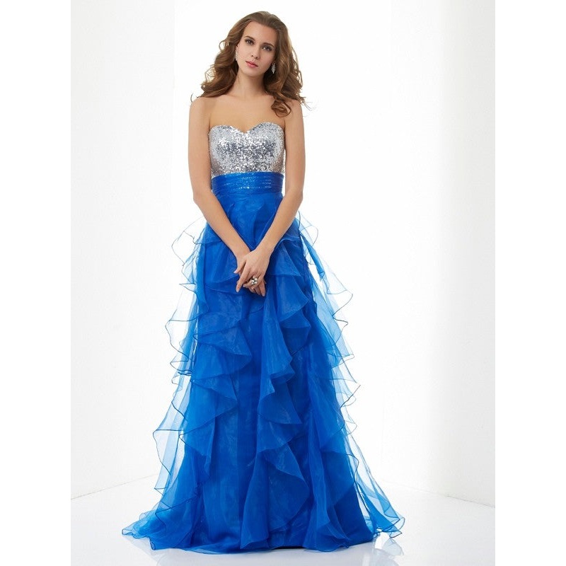 A-Line/Princess Sweetheart Sleeveless Paillette Long Satin Dresses