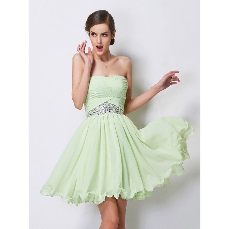 A-Line/Princess Sweetheart Sleeveless Short Beading Chiffon Homecoming Dresses