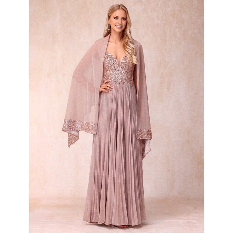 A-line princess thin shoulder strap sleeveless sequin long mother of the bride dress
