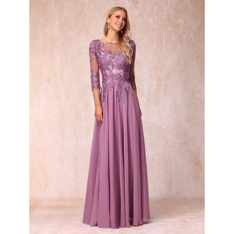 A-line/princess transparent collar 3/4 sleeve length formal mother of the bride dress
