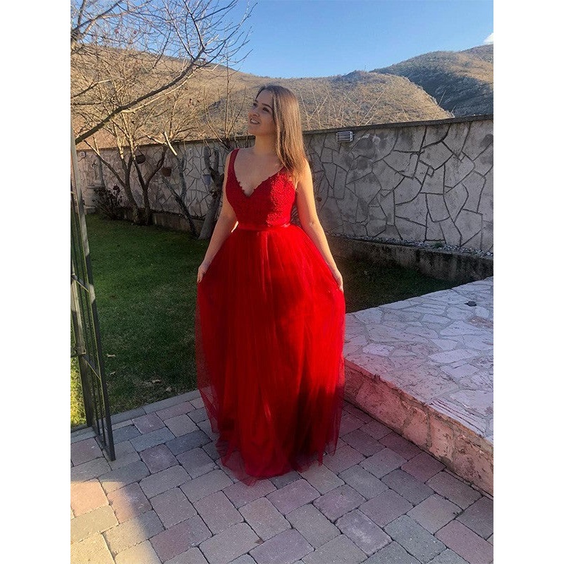 Be the first to review “A-Line/Princess Tulle Applique V-neck Sleeveless Floor-Length Dresses”