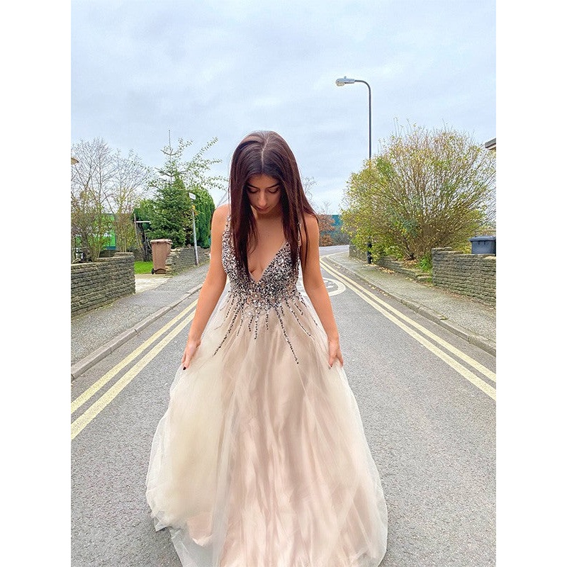 Be the first to review “A-Line/Princess Tulle Paillette V-neck Sleeveless Sweep/Brush Train Dresses”