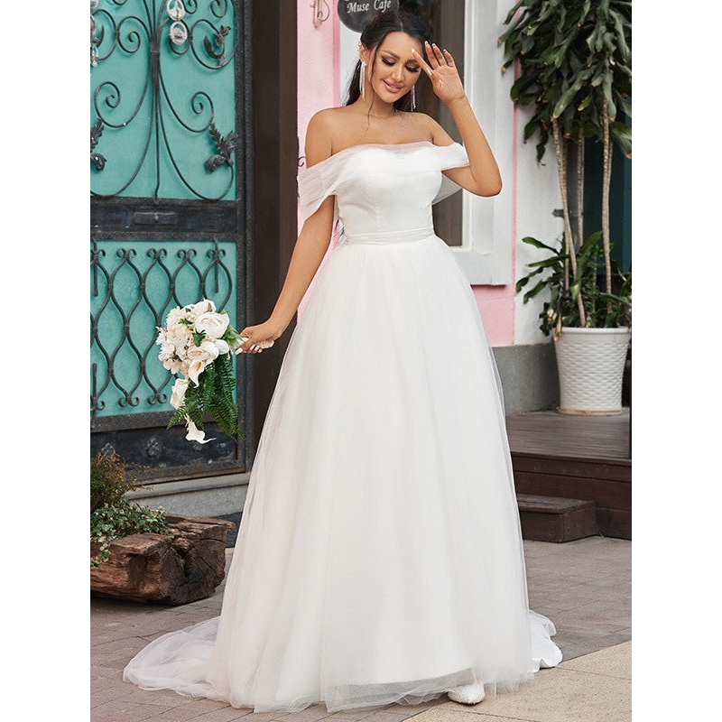 A-Line/Princess Tulle Ruffles Off-the-Shoulder Sleeveless Sweep/Brush Train Wedding Dresses