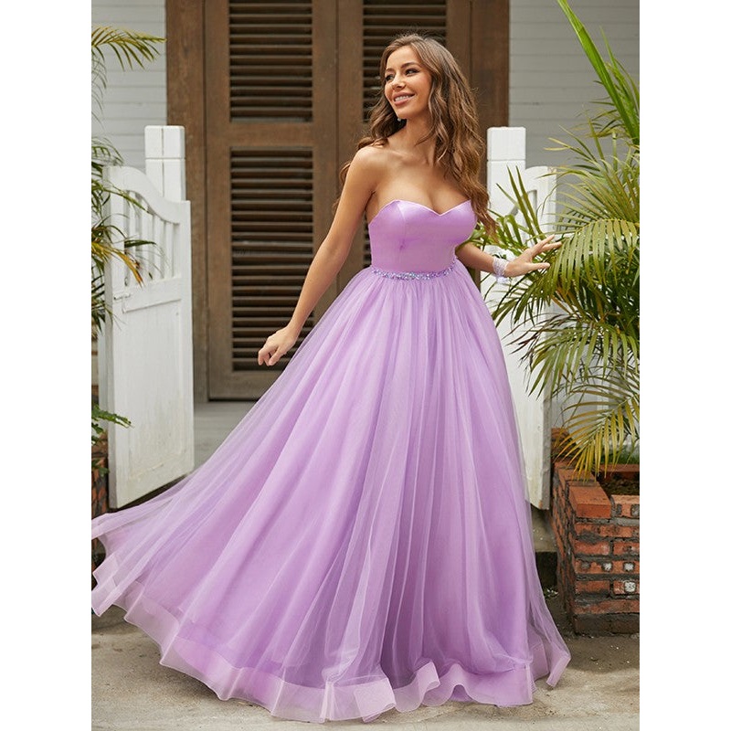 A-Line/Princess Tulle Ruffles Sweetheart Sleeveless Floor-Length Dresses
