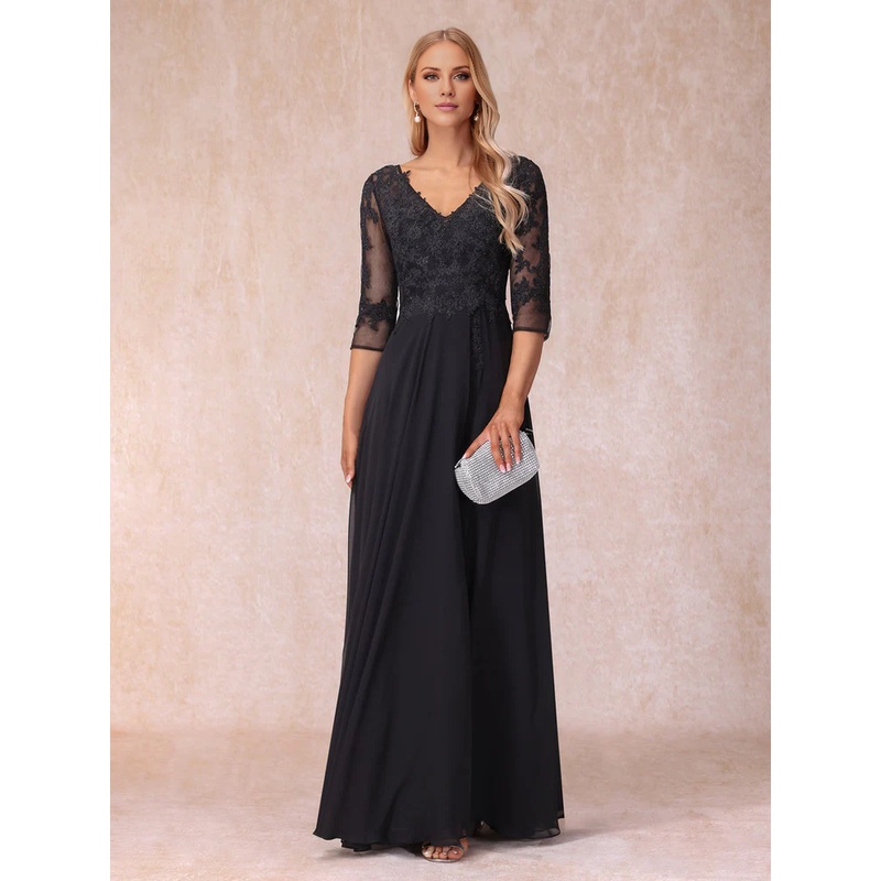 A-line/princess V-neck 3/4 sleeve length formal mother of the bride dress