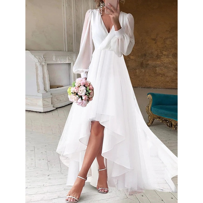 A-line/Princess V-neck Asymmetric Wedding Dress