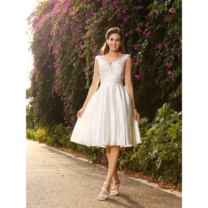 A-Line/Princess V-neck Beading Sleeveless Short Satin Wedding Dresses