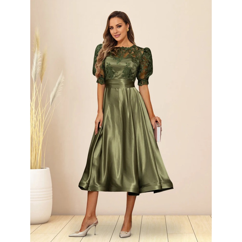 A-line/Princess V-neck fluffy sleeves tea long mother of the bride dress