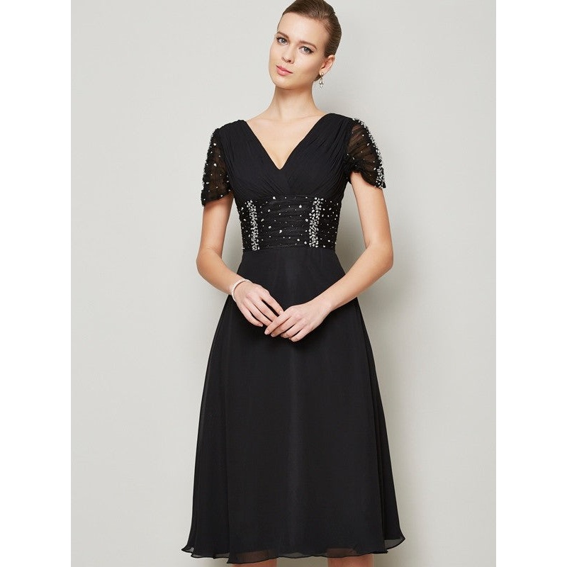 A-Line/Princess V-neck Short Sleeves Ruffles Short Chiffon Homecoming Dresses