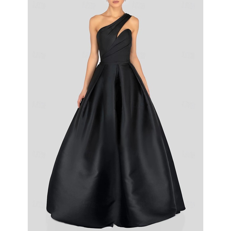 A-Line Prom Dresses Black Dress Dress Formal Prom Floor Length Sleeveless One Shoulder Satin with Ruched