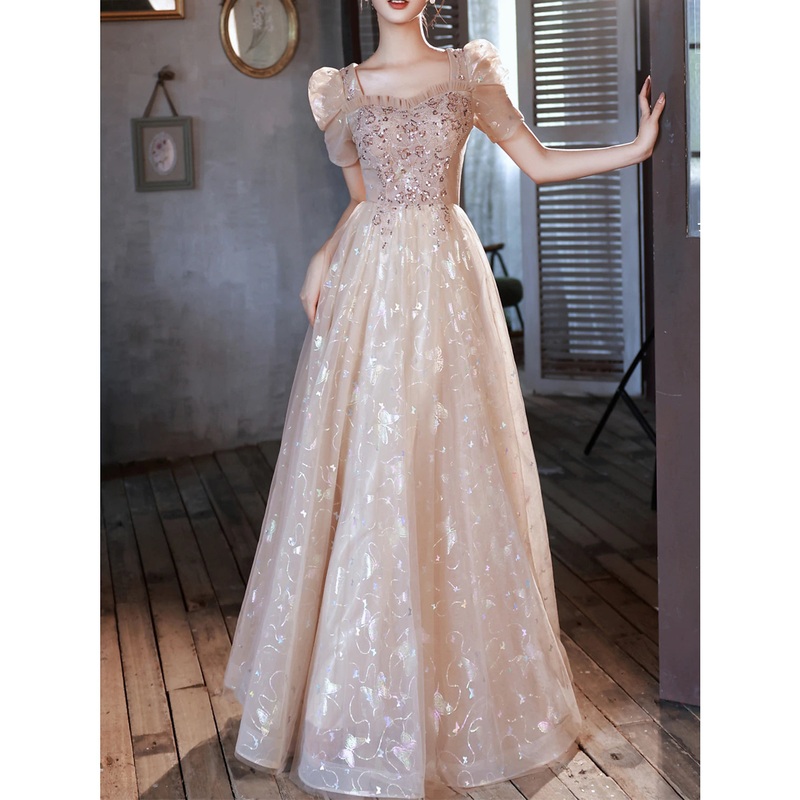 Jimiss chic yellow thin shoulder strap long Prom dress