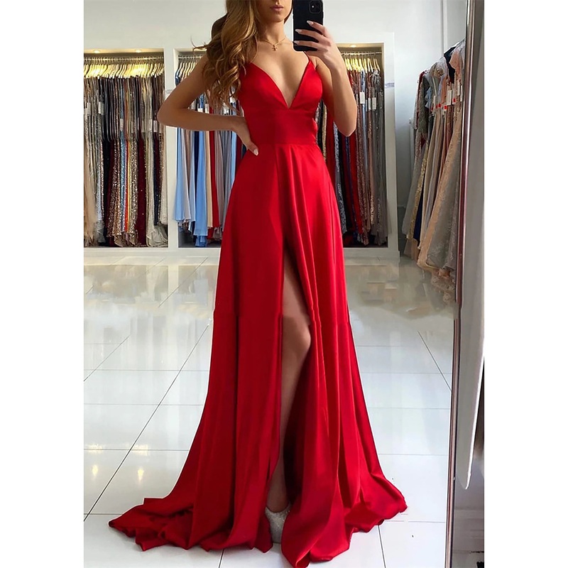 Be the first to review “A-Line Prom Dresses Empire Dress Formal Prom Sweep / Brush Train Sleeveless V Neck Imitation Silk Backless with Pleats Slit” Cancel reply