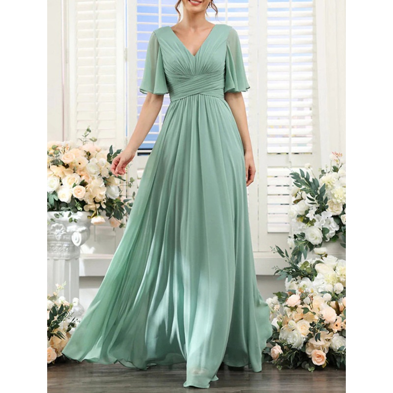 A-Line Prom Dresses Minimalist Dress Engagement Black Tie Gala Floor Length Half Sleeve V Neck Wednesday Addams Family Chiffon V Back with Pleats Ruched 2025