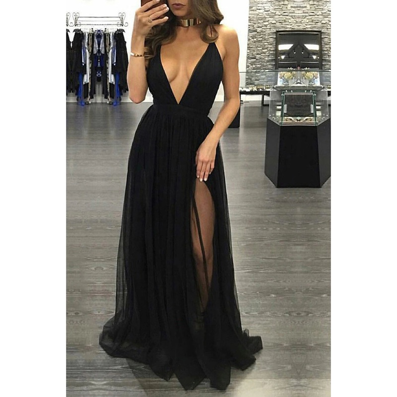 A-Line Prom Dresses Open Back Dress Formal Wedding Guest Floor Length Sleeveless V Neck Chiffon Backless with Pleats Slit 2025