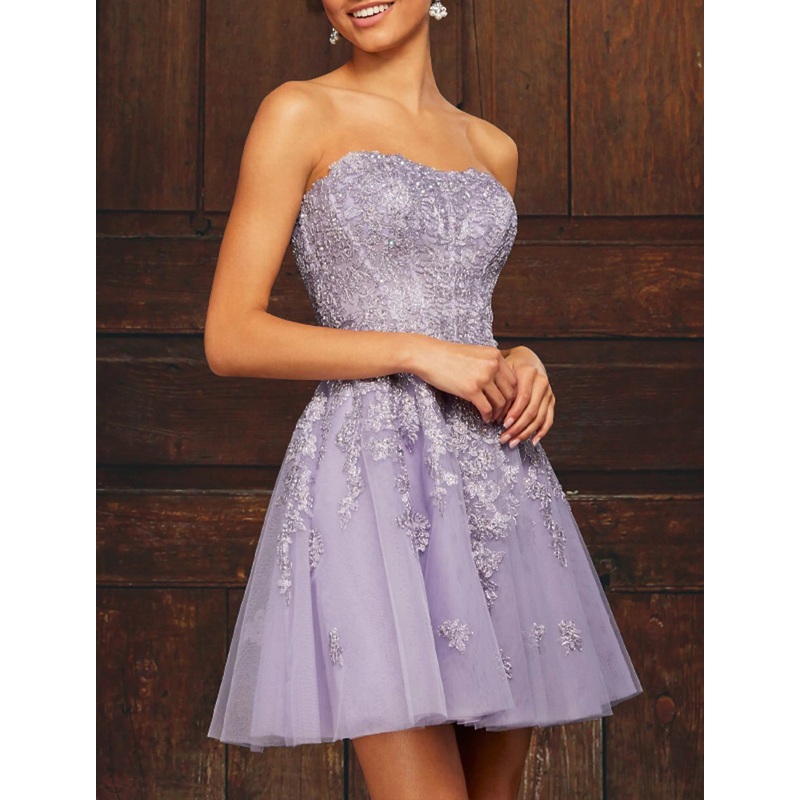 A-Line Prom Dresses Plus Size Dress Homecoming Graduation Short / Mini Sleeveless Strapless Pink Dress Tulle with Appliques