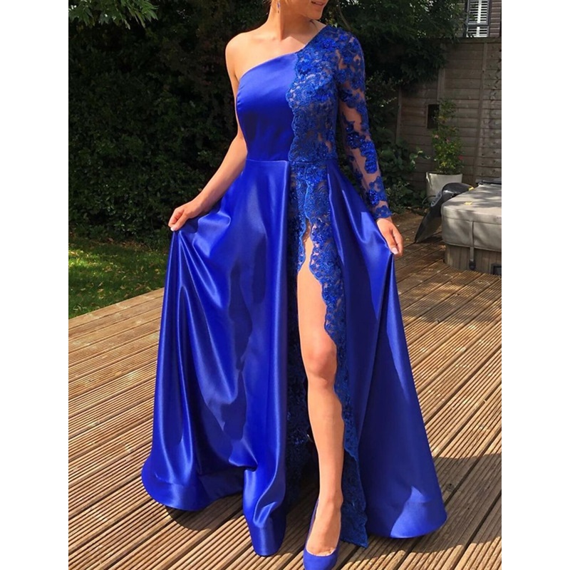 Be the first to review “A-Line Prom Dresses Sexy Dress Party Wear Wedding Guest Floor Length Long Sleeve One Shoulder Charmeuse with Slit Appliques 2025”