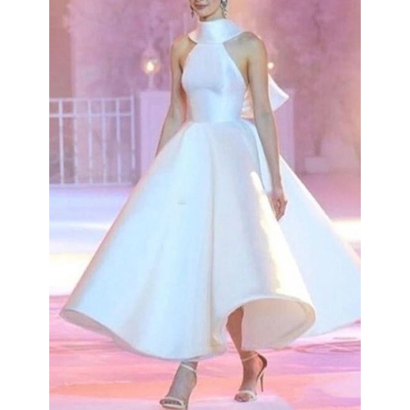 A-Line Prom Dresses Vintage Dress Homecoming Engagement Ankle Length Sleeveless Halter Neck Satin with Sleek Bow(s)