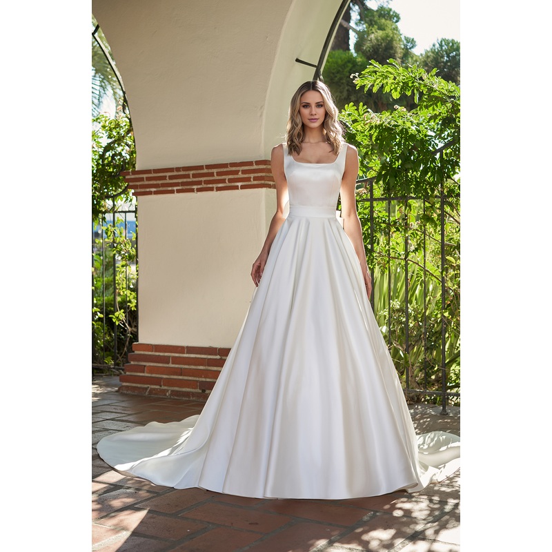 Be the first to review “A-line satin square neck bow and floor length wedding dress”