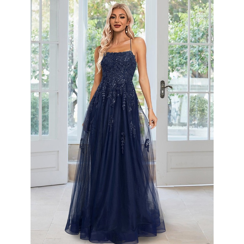 A-Line Sheath / Column Evening Gown Floral Dress Formal Wedding Guest Floor Length Sleeveless Spaghetti Strap Tulle with Sequin Appliques
