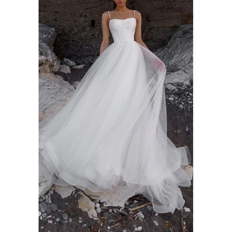 A-line shoulder strap auditorium casual wedding dress white minimalist bride dress