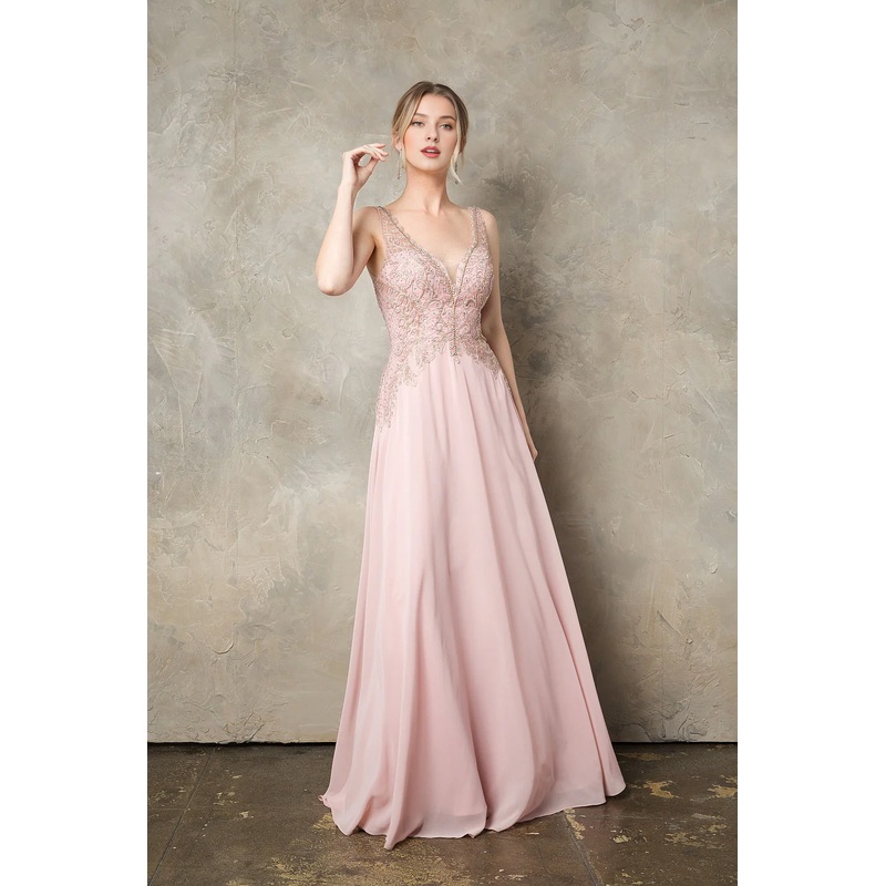 A-line skirt bead embroidery long sleeveless chiffon dress