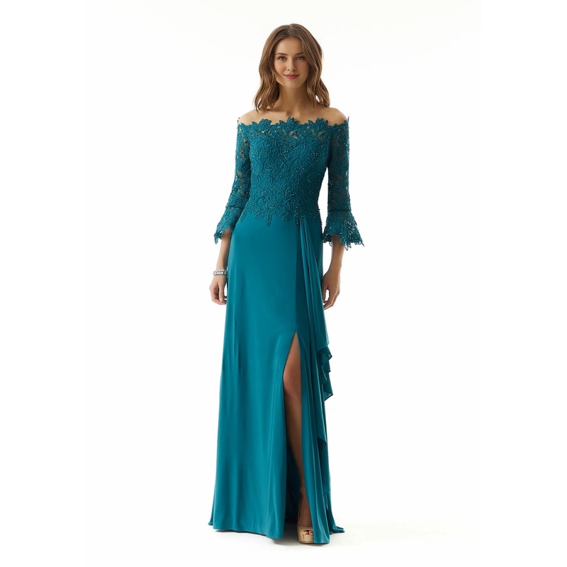 A-line skirt shoulder baring lace tight corset skirt with slits evening dress