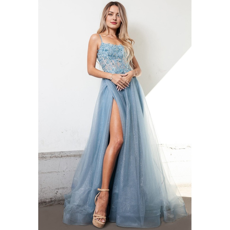 A-line slit skirt body embroidered bead decoration decal long sleeveless sequin dress