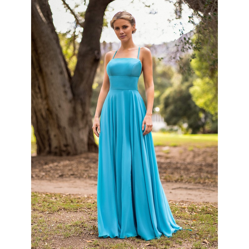 A-line straight tube chiffon and floor length hollow back and floor length formal dress